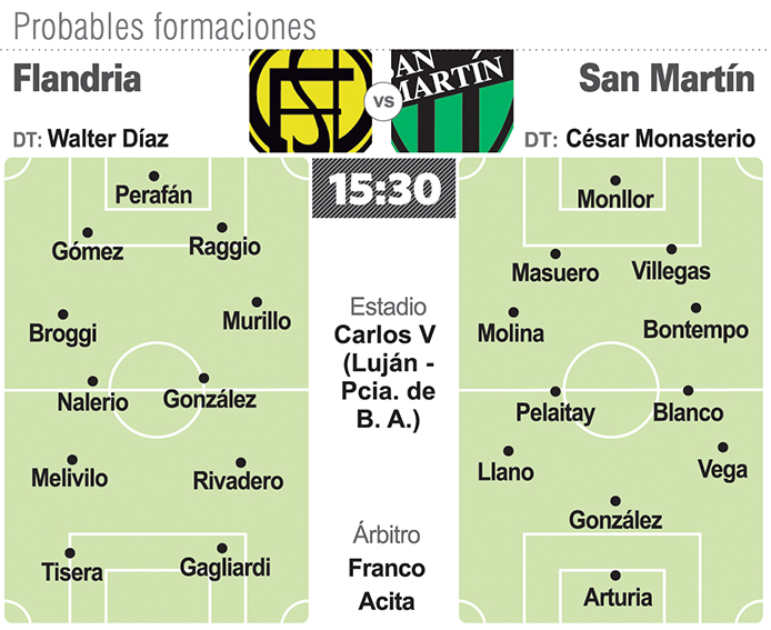Enfrente estará la urgencia de un Flandria que hoy está descendido. El Canario, que viene de empatar en Zárate, quedó a un punto de San Telmo y buscará la victoria como lo único que le sirve, aunque con un empate propio y una probable caída de San Telmo ante Morón tampoco le alcanzaría por la diferencia de goles. Es ganar o ganar.