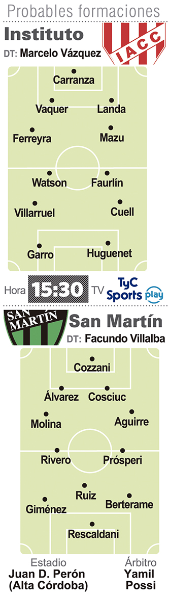 Pero San Martín ya está en otra cosa. El comienzo de Villalba como entrenador verdinegro dejó algunas aristas más que salientes en su propuesta y en su conformación pese a que no se le dio el resultado. Lo que sí condicionaron todo el debut fueron las lesiones y hoy las dudas pasan por Martín Rivero y Maxi González, los dos volantes de recuperación que debieron salir por molestias ante Gimnasia de Jujuy. El nuevo modelo se basa en esos dos pilares del equilibrio y si no llegara alguno de ellos, el polifuncional Prosperi podría tener titularidad. Más allá de los nombres, San Martín tiene otro perfil y la idea sustancial de tratar siempre bien la pelota, jugar corto, asociarse en velocidad y en ese momento de identificación están todos. La última línea podría recuperar a Francisco Alvarez que no pudo estar ante los jujeños, mientras que del medio para adelante, el trío que arman Gimenez, Ruiz y Berterame por detrás de Rescaldani conjugan la propuesta ofensiva de este San Martín. No es un viaje sencillo para el Verdinegro, pero en Alta Córdoba puede que sea el examen que está necesitando para ver dónde está parado.