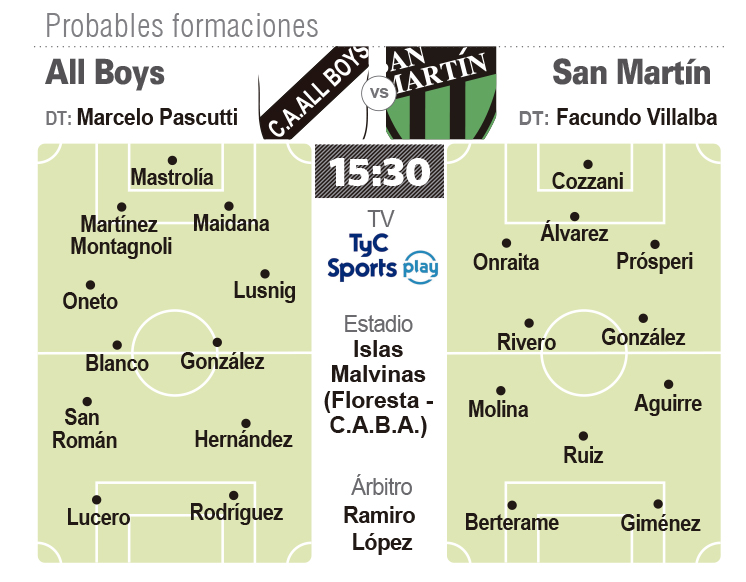 Por eso, a las 15.30 cuando visite a All Boys en Floresta, sus banderas serán las de sumar como sea y si es mejor de a tres puntos. Así lo planteará en una cancha compleja, chica, que no perdona errores. Será recuperar todos esos puntos perdidos para San Martín.