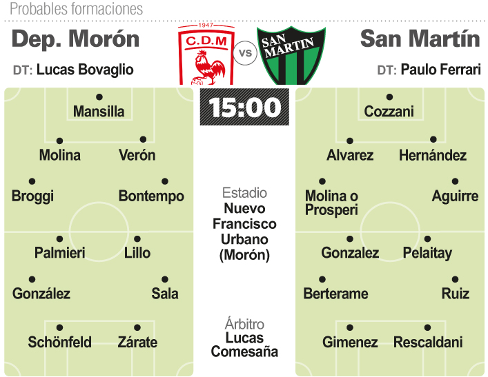 Del lado de Morón, dirigido por Lucas Bovaglio, todo indica que se repetirá la última formación que ganó antes del receso: