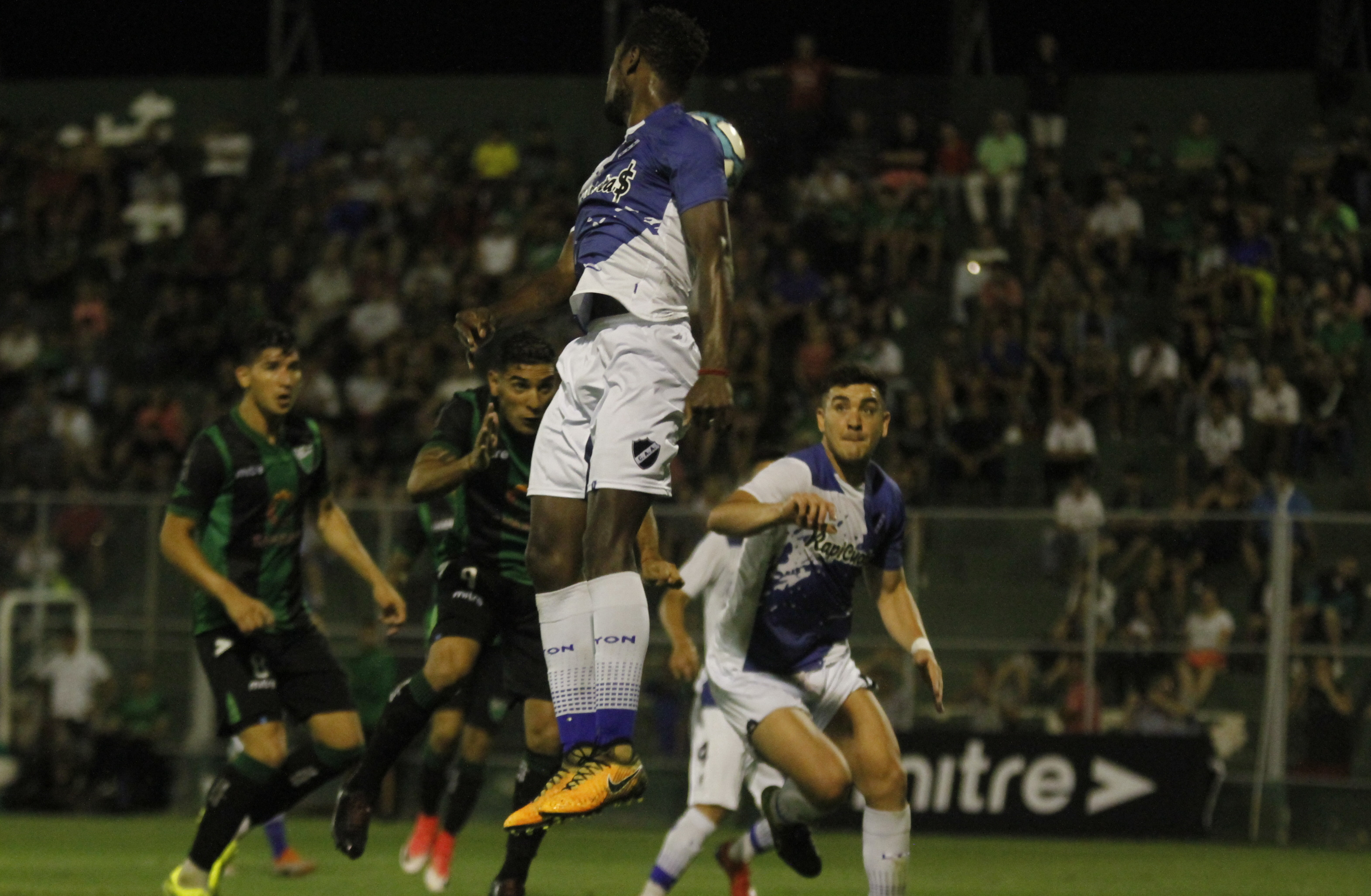 Potente. Vidal ya metió el centro y Martín Bravo de cabeza empujó la pelota al gol tras el intento en vano del defensor marplatense por ahogar el grito.