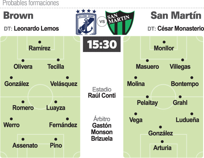 Así, con pocos misterios y obligado a buscar un resultado positivo, San Martín se jugará todo a ganador en el Sur. Ante un rival como Brown de Puerto Madryn que está a tres puntos del descenso directo y ahora en el repechaje superado por San Telmo que le ganó a Gimnasia de Mendoza y se está salvando de todo. El equipo de Leonardo Lemos viene de perder en Zárate contra el CADU y necesita sumar. De local, ya dio muestras de tener otro perfil bajando a los que venían arriba como Agropecuario al que derrotó en su estadio. Es rival de cuidado. Como lo dijo el propio Monasterio en la previa, todos los equipos a esa altura de la temporada juegan por algo y Brown juega contra el descenso nada menos. Un arma de doble filo para cualquiera. Brown en su desesperación puede que se abra pero estará en San Martín la capacidad de aprovechar esa ansiedad local.