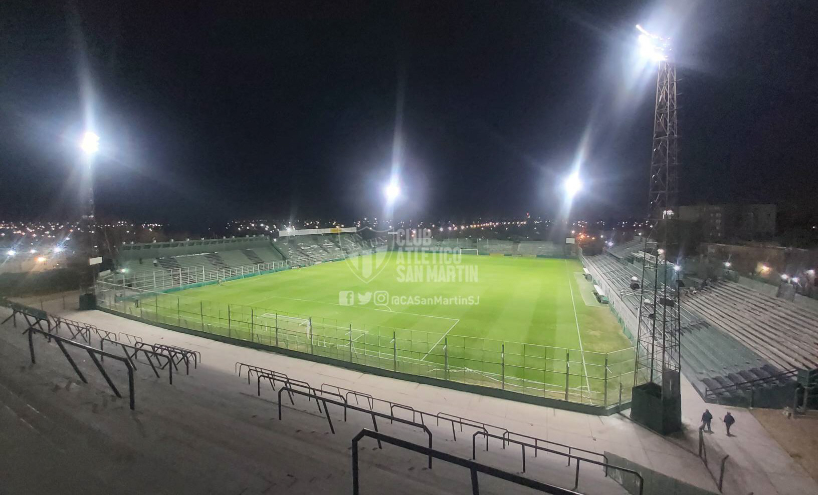 No todo es fútbol, goles y viajes en San Martín. En el indispensable camino del crecimiento institucional. el Verdinegro empezó a darle forma a las obras de mantenimiento y mejoramiento en las instalaciones del estadio Hilario Sánchez. Este domingo ya se realizó la primera prueba en el sistema de iluminación que consistió en el reemplazo de las viajas luminarias y la instalación de Led de última generación que mejoró ostensiblemente la visión en el estadio. Los ajustes seguirán y se especula que la inauguración se podría dar en la fecha 30 cuando reciba a Brown de Puerto Madryn en San Juan.