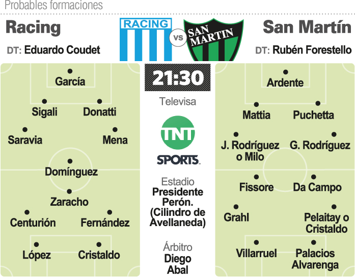 Sin dudas el contexto es muy favorable a Racing que domina el historial de 10 partidos con 6 triunfos contra uno de San Martín (los otros son empates). Pero claro el Verdinegro irá contra todos los pronósticos, sabe que la misión de hoy es difícil pero no imposible.