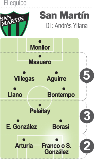 La potencia de Nicolás Franco o las sutilezas de Sebastián González. Esa es la duda con que la que el Atlético San Martín emprendió el viaje en la tarde de este jueves para enfrentar mañana al Deportivo Morón por la fecha 5 de la Primera Nacional. El técnico Andrés Yllana no confirmó la formación titular pero si definió su apuesta a sostener el sistema defensivo con tres centrales y dos laterales de mucho recorrido y tres volantes, más dos delanteros, con prácticamente los mismos nombres que arrancaron el sábado pasado contra Güemes de Santiago del Estero pero solamente, esa única duda entre la titularidad para Nico Franco o la nueva chance para Sebastián González, algo que ya pasó en la jornada anterior en el Pueblo Viejo. El que seguirá afuera es el delantero Luciano Gordillo, afectado por una tendinitis que ya lo sacó ante los santiagueños y ahora se pierde el partido contra Morón.