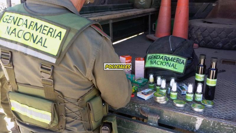 Los hombres se movilizaban en un Fiat Palio y tenían en su poder 2 frascos de 250 cm3. de cannabis, 6 envases spray de 33 ml. y 6 recipientes de lata con crema de aceite de cannabis.