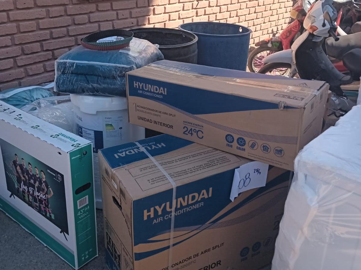 Entre los elementos recuperados se puede ver, entre otros artículos, heladeras, aire acondicionados, lavarropas y televisores. Además de acolchados y elementos de limpieza.