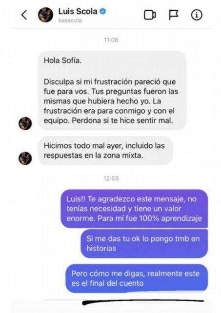 Sin embargo, este martes, con la cabeza en frío, Scola le mandó un mensaje por Instagram pidiéndole disculpas.