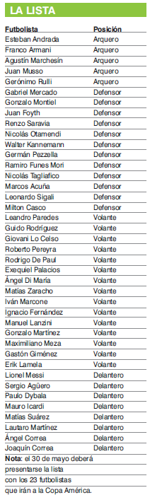 Scaloni cambió de opinión en los últimos días ya que pasó de anunciar que iba a dar la lista definitiva de 23 integrantes a finalmente cumplir con el límite de 40 futbolistas que daba la Conmebol para presentar a 30 días del comienzo de la competencia.
