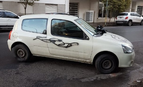 Cansado y en medio de un brote de ira, un vecino marplatense que no fue identificado le pintó con aerosol el ícono de “prohibido estacionar” a un Renault Clio que tapaba la bajada de un garaje.
