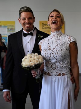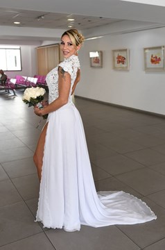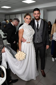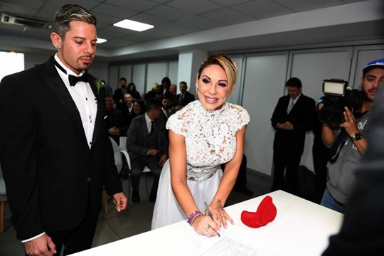 Mónica Farro se casó con su joven novio personal trainer, Leandro Herrera. La ceremonia fue el viernes y la vedette lució de blanco.