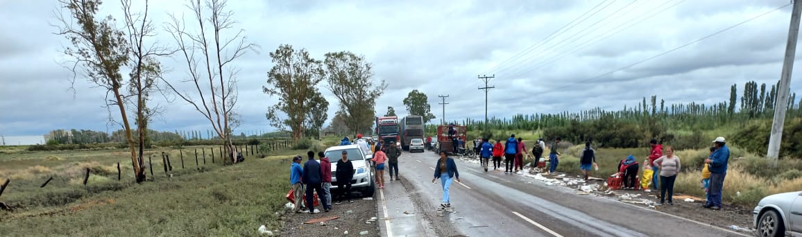 Por una maniobra imprevista del chofer, en el mediodía de este jueves, hubo una concentración de personas en Media Agua que se querían llevar parte del ‘tesoro’ que se cayó del camión.