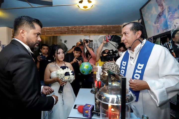 El pasado 1 de octubre, Héctor García y Jaziel Torres contrajeron nupcias bajo el único rito en el mundo que venera al futbolista argentino, Diego Armando Maradona. En el recinto, ubicado en la ciudad de San Andrés Cholula, en el estado mexicano de Puebla, se reunieron familiares y amigos de los novios, así como fanáticos del astro para conmemorar el primer matrimonio oficial llevado a cabo por la Iglesia maradoniana en México.