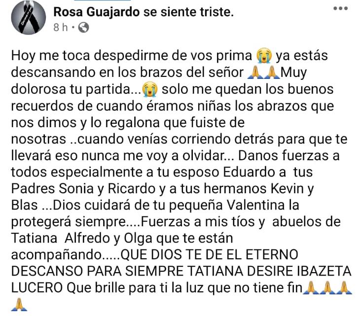 Desde ese momento, su familia se unió en cadena de oración, rezando para que lograra salir adelante. Sin embargo, después de 14 días de lucha, la joven mamá falleció esta mañana.