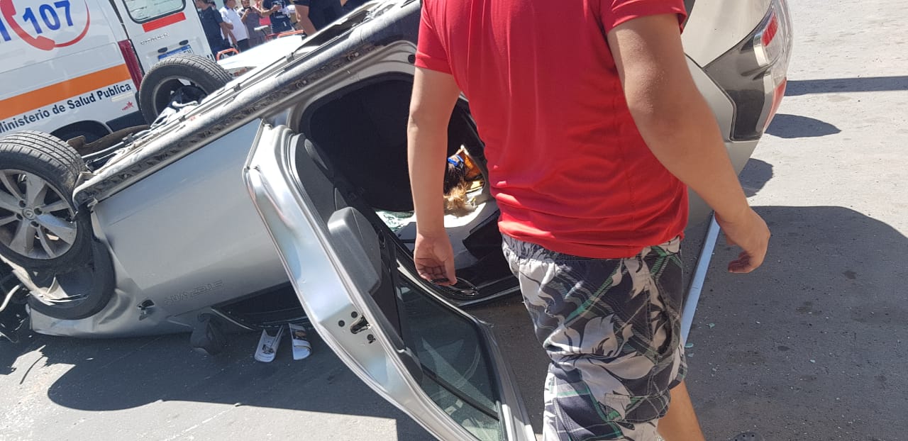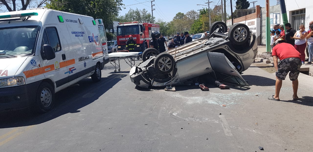 Minutos después del mediodía se produjo un impresionante accidente de tránsito que no terminó en tragedia de milagro. El hecho ocurrió pasadas als 12.30, en calles Comandante Cabot y Paula Albarracín de Sarmiento, en Rivadavia.