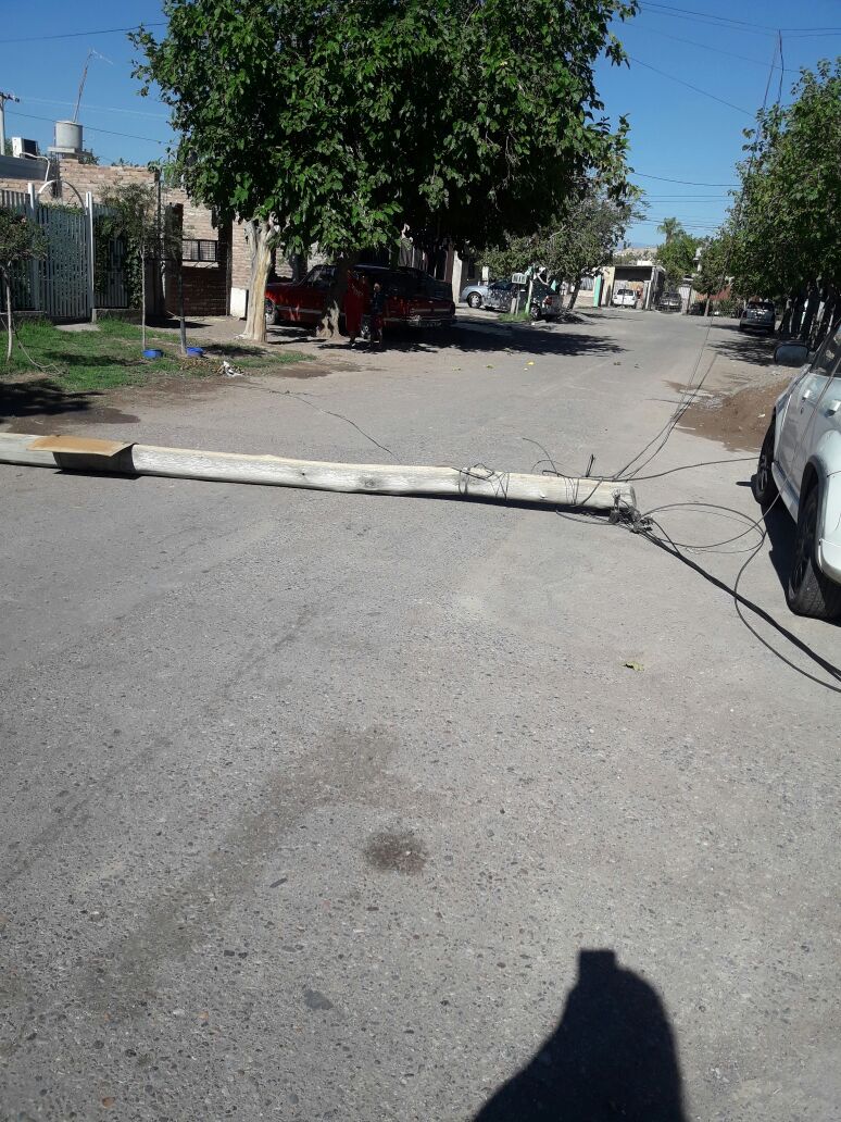 Un lector envió una imagen y el siguiente: “Este poste se cayó en la calle Anzorena del barrio Frondizi. No por el viento, sino por FALTA DE MANTENIMIENTO. Lo de menos es que cayera sobre ese auto y ¿si se desplomaba sobre una persona?”.
