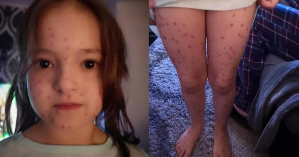 "Tuvimos que enviarla con una carta para decir que las marcas no eran contagiosas o reales y que no podíamos borrarlas. Usamos gel de baño, jabón, agua caliente, aceite de bebé, toallitas con alcohol. Creo que fue la laca para el cabello la que las eliminó después de cuatro días", explicó su mamá.