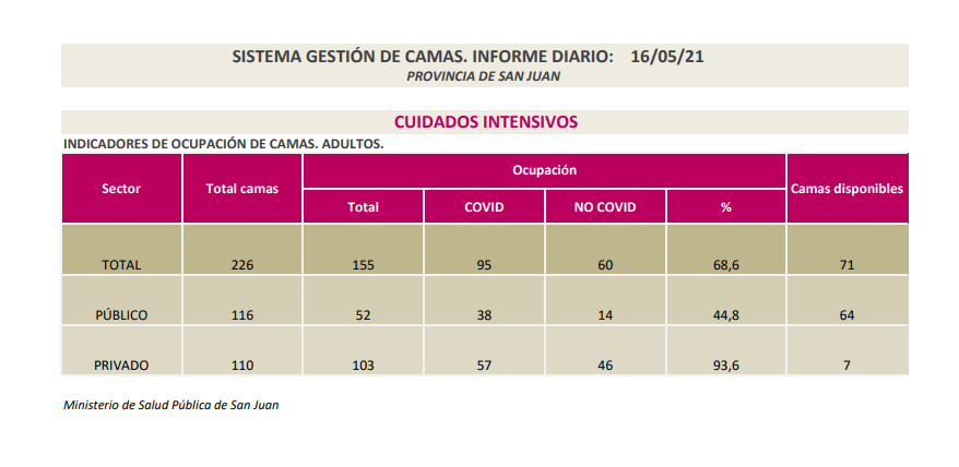 De ese total, 95 permanecen internados en el Área Crítica pacientes, 42 de los cuales se encuentran con asistencia respiratoria mecánica. De acuerdo a la disponibilidad de camas, la ocupación se elevó en las últimas 24 horas al 68,6%.