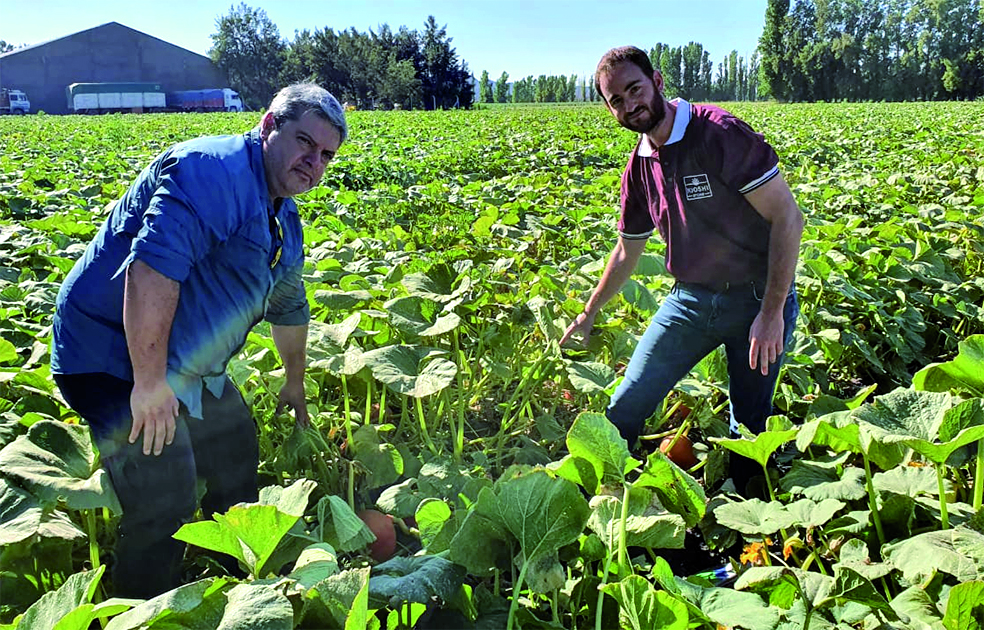 Alejandro Guzmán dialogó en un lote de zapallos con Suplemento Verde. Él es uno de los propietarios de Aguafértil, que manejan los productos de varias empresas, de ellas varios de uso en cultivos orgánicos. Bloemen, Kioshi Stone, Tensac, Wayne Agro y Dampsa Argentina.