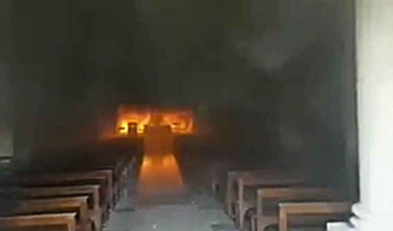 Las llamas empezaron a registrarse poco después de las 15. Una gran columna de humo se observaba desde el exterior, mientras que las llamas devoraban el sector del altar y peligraba parte de la estructura del techo.