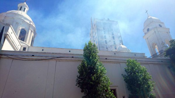 La catedral de la ciudad bonaerense de San Nicolás de los Arroyos, a 70 kilómetros de Rosario, Santa Fe, se incendiaba esta tarde y cinco dotaciones de bomberos trabajaban para combatir el fuego.