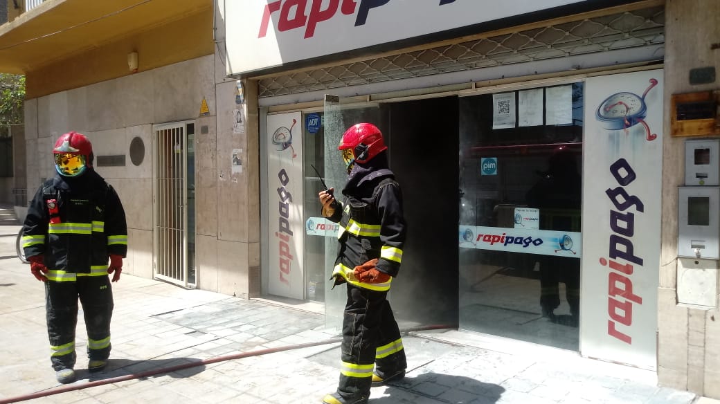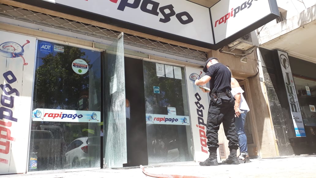 Personal de Bomberos actuó rápido pero aún así el incendio ocasionó importantes pérdidas en el local de Rapipago de calle Rivadavia, cerca de Tribunales.