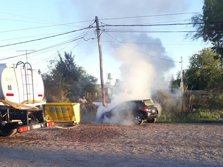 Un accidente de tránsito a primera hora de este viernes tuvo lugar en la Villa Santa Rosa, en el departamento 25 de Mayo. Todo ocurrió cuando una mujer oriunda de Rawson transitaba por calle Mitre antes de Ruta 270. Por motivos que se investigan, el auto que conducía comenzó a prenderse fuego y terminó impactando contra un poste del alumbrado público.