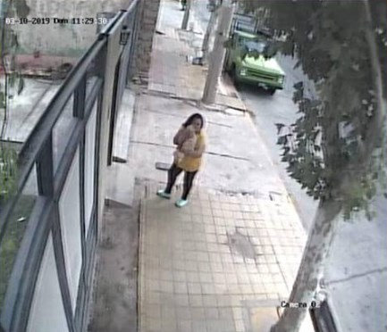 En las imágenes se observa cómo la mujer cruza la calle, toma la perrita en sus brazos, toca el timbre de la vivienda y se queda esperando. Lamentablemente, en ese momento no había nadie adentro y decide irse con el animal.