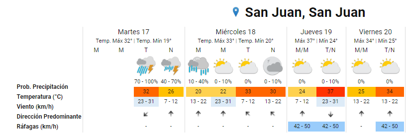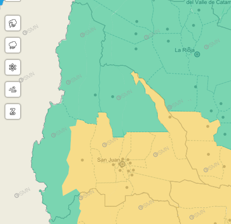 El mayor cuidado habrá que tenerlo durante la tarde, por "posibles fenómenos meteorológicos con capacidad de daño y riesgo de interrupción momentánea de actividades cotidianas", informa el portal dela entidad nacional. Según se observa en el mapa, el alerta alcanza a todos los departamentos de la provincia, a excepción de iglesia y de Jáchal.