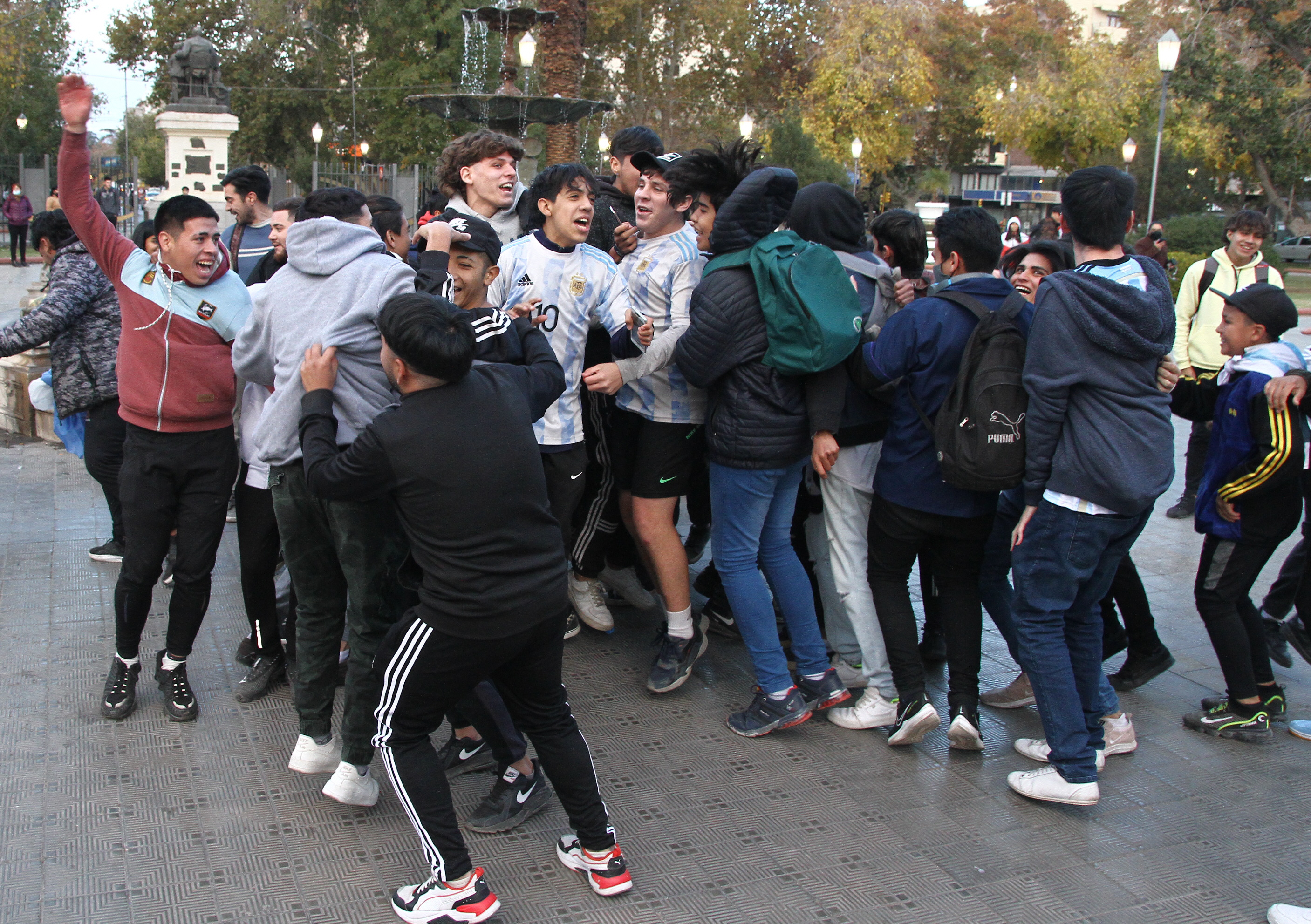 El intenso frío no resultó un problema para decenas de hinchas sanjuaninos que llegaron a la Plaza 25 de Mayo para festejar la obtención de la Finalissima ante Italia. En su mayoría, resultaron jóvenes de secundaria los presentes.