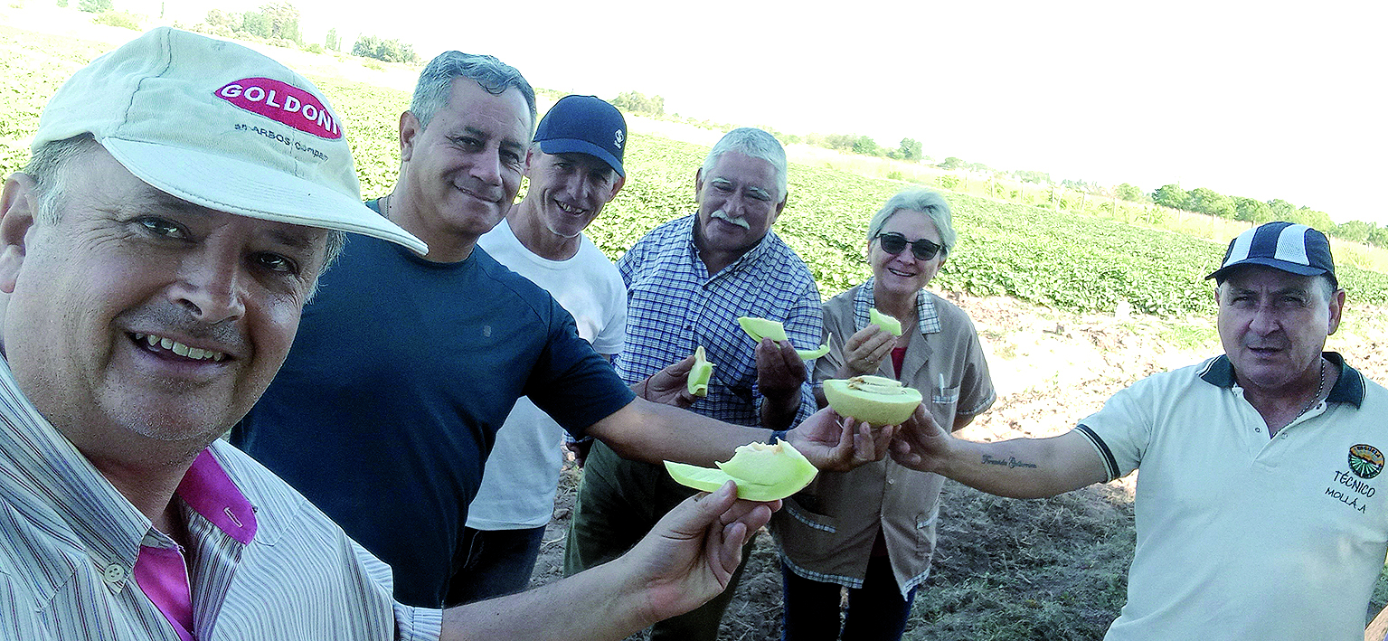 Mencionó "hicimos 2 ensayos, uno de melón, de 1.800 metros cuadrados, incluyendo materiales híbridos, de la compañía internacional HM Clause, con dos melones, San Vicente y Flash Dew, y también con dos OP, de polinización abierta, como Honey Dew y Filadelfia. Y otro ensayo, de similar extensión es de sandía, donde se trasplantaron plantines de Jubilee y Crimson.