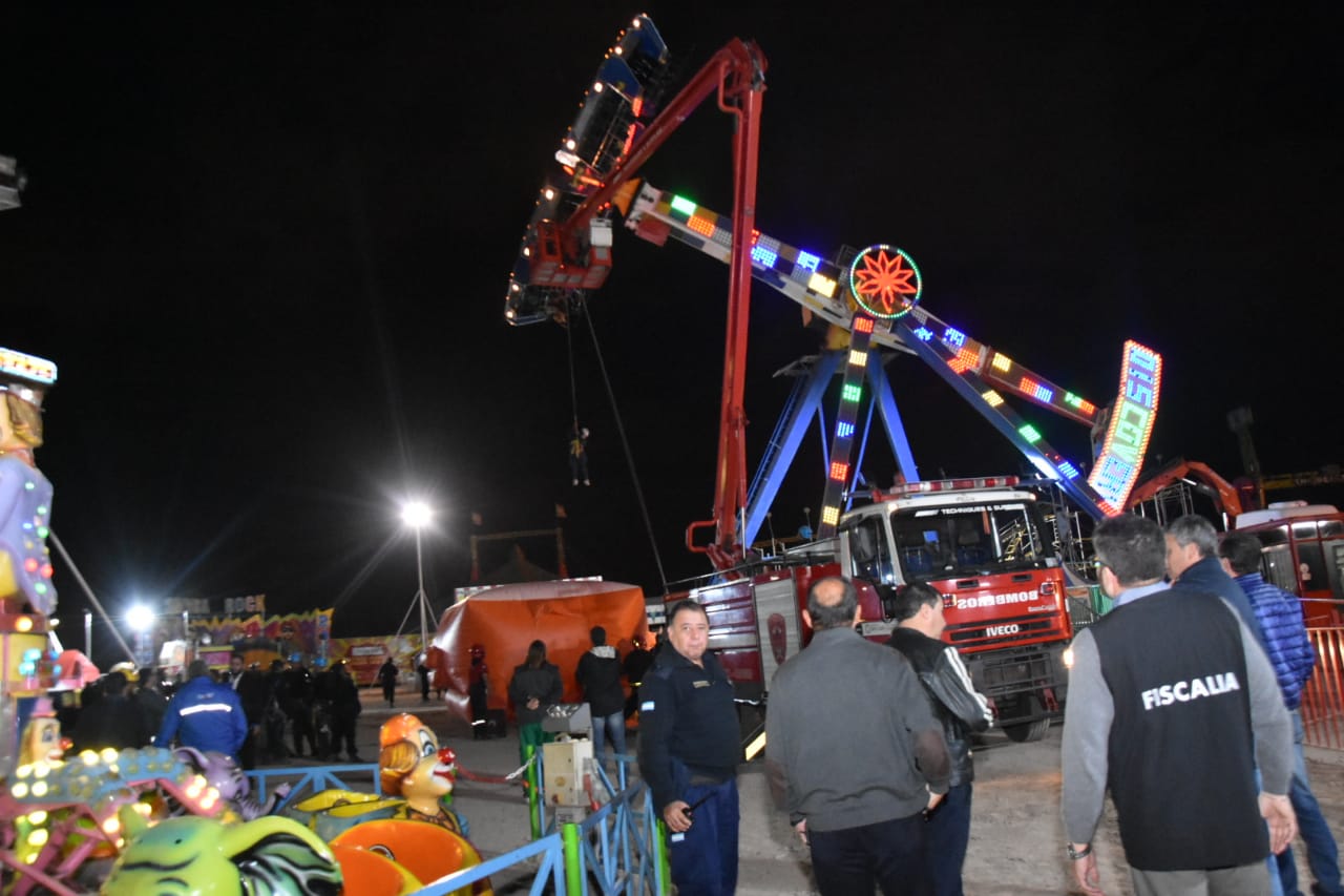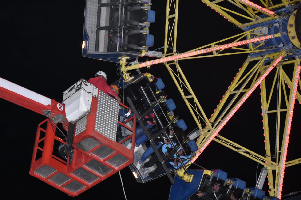 Momentos de máxima tensión en el predio del Hipódromo del Jockey Club en virtud que uno de los juegos del parque de diversiones que allí está instalado se descompuso y quedaron unas 30 personas suspendidas en el aire.