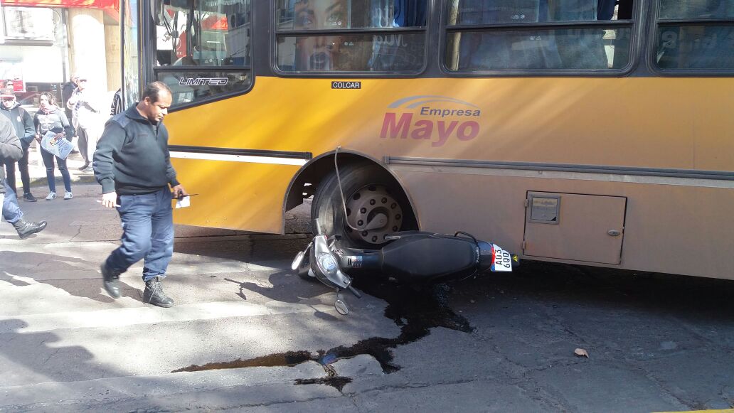 Un joven motociclista se salvó de milagro. Es que según el mismo contó, logró saltar de su moto segundos antes de que esta terminara destruida bajo las ruedas de un colectivo de la empresa Mayo.