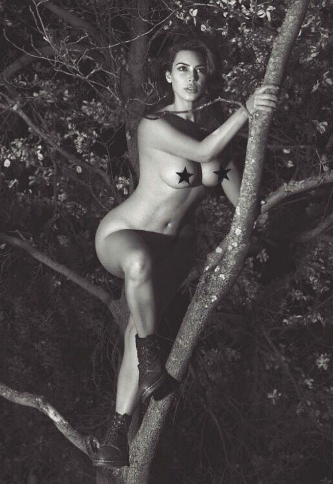 Retratada por los fotógrafos Mert & Marcus, la morocha deslumbró con su figura totalmente desnuda sobre un árbol. Sólo se dejó las botas puestas, y usó unas estrellitas para tapar sus pezones en la red social.