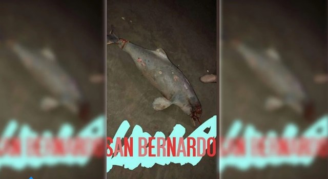 Un delfín yace tendido sobre la arena de una playa. Es de noche y los jóvenes que encuentran al animal filman la escena, mientras mantienen un diálogo. “Despertate compa, vamos al agua”, dice primero el chico a modo de broma. Luego su compañera pregunta: “¿Lo llevamos al agua?”. La respuesta es está re “muerto”. Lo que siguen son risas y patadas. Después un cruce de palabras: “Está vivo”, dice ella. El mismo joven que lo pateó, contesta: “¿Cómo sabés?”.