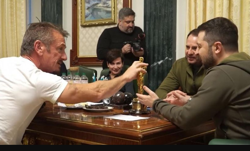 El actor estadounidense Sean Penn le entregó al presidente ucraniano, Volodimir Zelenski, uno de los dos premios Oscar que recibió durante su carrera, estatuilla que se quedará en Kiev hasta que el país gane la guerra frente a Rusia.