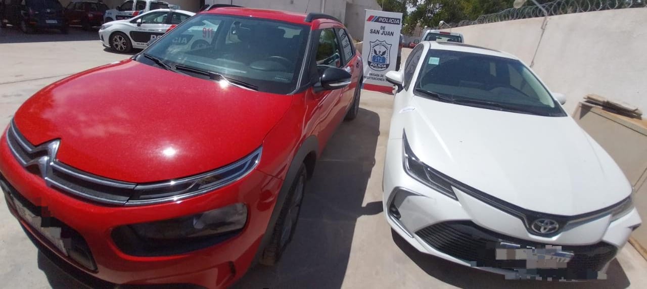 Personal policial de Brigada de Investigaciones Sur (D-5) logró establecer que en Calle Nueva España y Calle Córdoba, Dpto. Santa Lucia, se encontraban vehículos con pedido de secuestro de Córdoba por denuncia de robo.