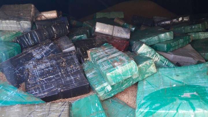 Ocultas entre un cargamento de soja fueron encontradas más de diez toneladas de marihuana, que las autoridades de ambos países sospechan que iban a ser trasladas hasta la Argentina para su posterior venta.