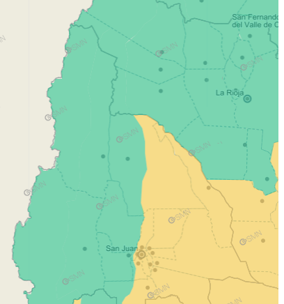 La zona de influencia del fenómeno será el Gran San Juan y la zona Este de la provincia. El SMN marca cuál será el sector de influencia del fenómeno: