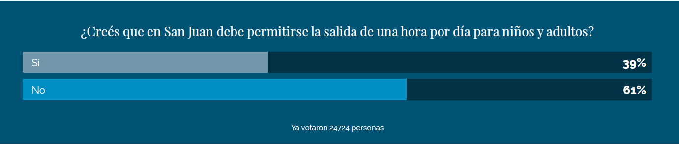 Según el resultado del sondeo, el 61% no está para nada de acuerdo con autorizar la salida de esparcimiento para niños y grandes, al menos por ahora.