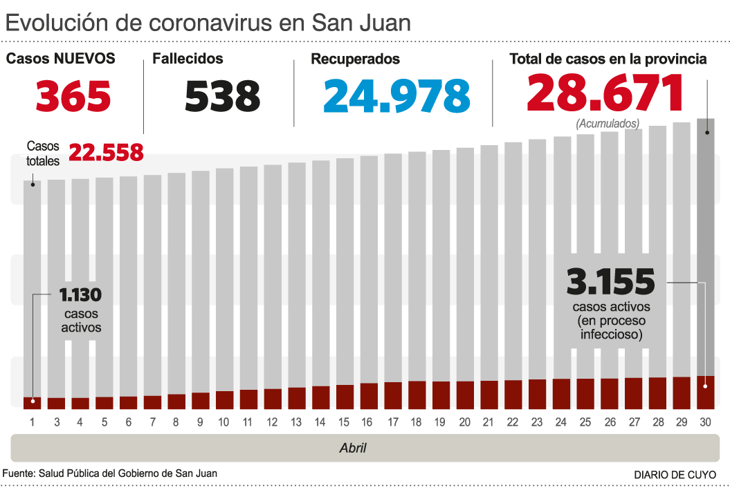 Hasta el 30 de abril hubo 6.196 casos (ayer no hubo parte) y por lo tanto se convirtió en el mes de mayor cantidad de contagios en lo que va de la pandemia. Superó a noviembre del año pasado, que en el pico de la peste acumuló 5.947 confirmaciones y había relegado a octubre, que cerró con 4.560.