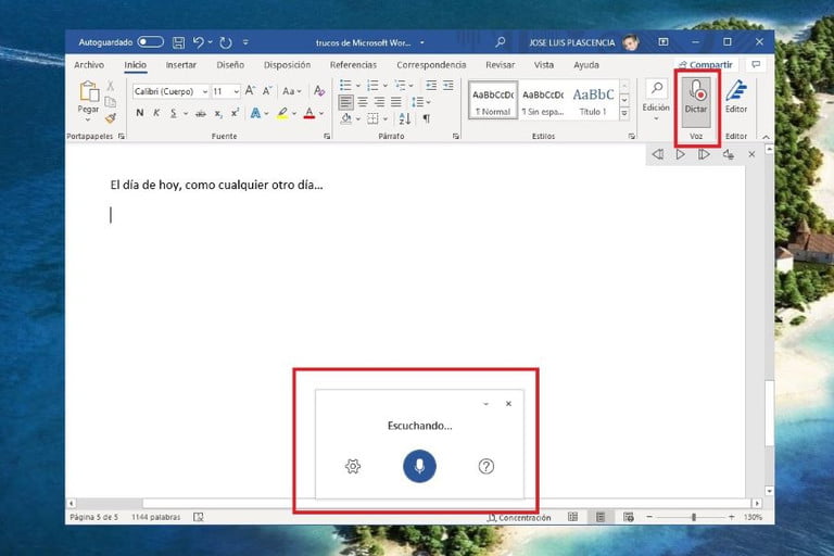 Con el dictado por voz, puedes utilizar la función de voz a texto de Word para pronunciar tus palabras en lugar de tener que escribirlas en el teclado. Esto es ideal para ahorrar algo de tiempo.