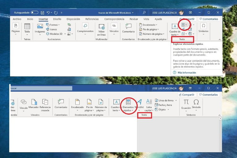 El último truco en la lista es una característica de Word conocida como Elementos rápidos. Esta función te ayuda a insertar algunos elementos estándar de texto en tu documento, sin tener que escribir palabras manualmente.