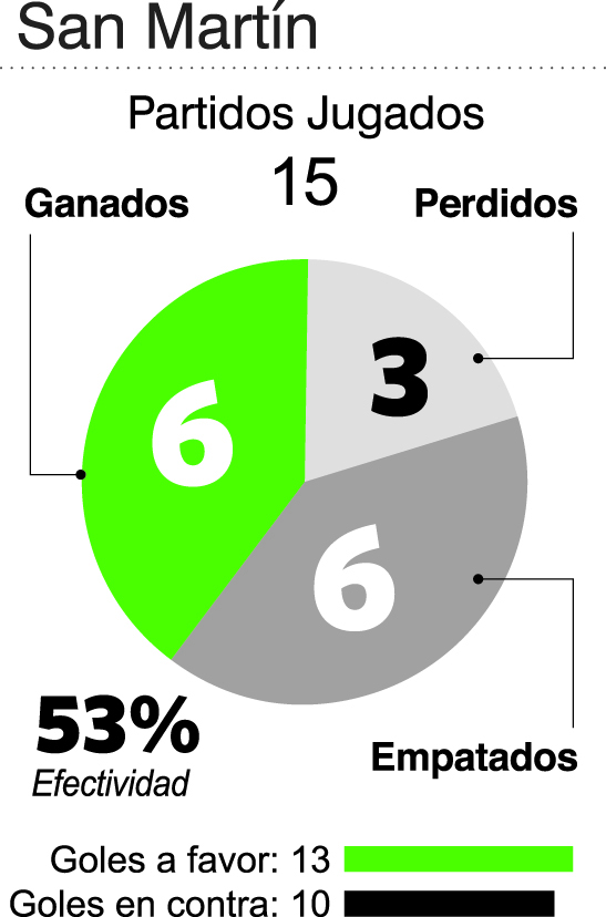 Un descenso obliga a la refundación. A comenzar todo de nuevo y a volver a pararse desde las cenizas. No es sencillo para nadie y en este segundo semestre de Atlético San Martín, el medio camino en la temporada de la Primera Nacional queda en el casillero del balance positivo. Los números lo asisten: terminará este 2019 en la quinta posición, apenas un escalón abajo de los que clasifican al Reducido por el segundo ascenso pero con un rendimiento más que alentador desde lo estadístico. Remarcando además, que apenas con dos fechas jugadas se quedó sin entrenador por la salida de Rubén Forestello, un interinato breve de Hugo Garelli en el medio y la llegada desde la fecha 4 de Alfredo Grelak. Jugó 15 partidos este San Martín con los tres entrenadores que tuvo y ganó 6 de ellos, empatando 6 y perdiendo sólo 3, destacando que fueron sólo dos de local y apenas uno de visitante. Viendo los rendimientos, entrenador por entrenador, con Forestello jugó 2, empatando uno con Belgrano y perdiendo el restante con Estudiantes de Buenos Aires. Con Garelli jugó uno solo y lo ganó, en Mitre de Santiago del Estero. Luego llegaron los 12 partidos del ciclo Grelak: ganó 5 (Platense, Independiente Rivadavia, Ferro, Estudiantes de Río Cuarto y Nueva Chicago), empató 5 (Agropecuario, Barracas Central, Morón, Brown de Madryn y Alvarado) perdiendo sólo 2 (Temperley de local y Atlanta de visitante). En los goles, tuvo un rendimiento positivo con 13 a favor y 10 en contra en 15 juegos, casi como el ideal de hacer un gol por partido y que no te conviertan en todos. En el sistema, en los nombres y en el modelo hubo mutaciones. Mantener la base de los históricos como Ardente, Prósperi, Mattia, Gelabert, Bravo y Osorio fue definitivamente un acierto porque desde esa columna hoy sale el equipo que terminó jugando. En la cartelera de nombres que llegaron para jugar, Facundo Monteseirín y Luis Jerez Silva entraron de movida y no salieron más. Se ganaron el lugar con sus rendimientos.