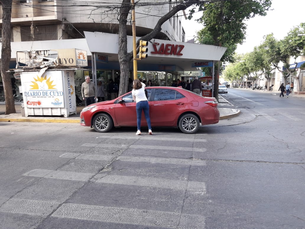 Un lector envió una imagen y el siguiente comentario: "Esta mujer tuvo el auto atravesado en la senda mucho minutos tapando la rampa para discapacitados".
