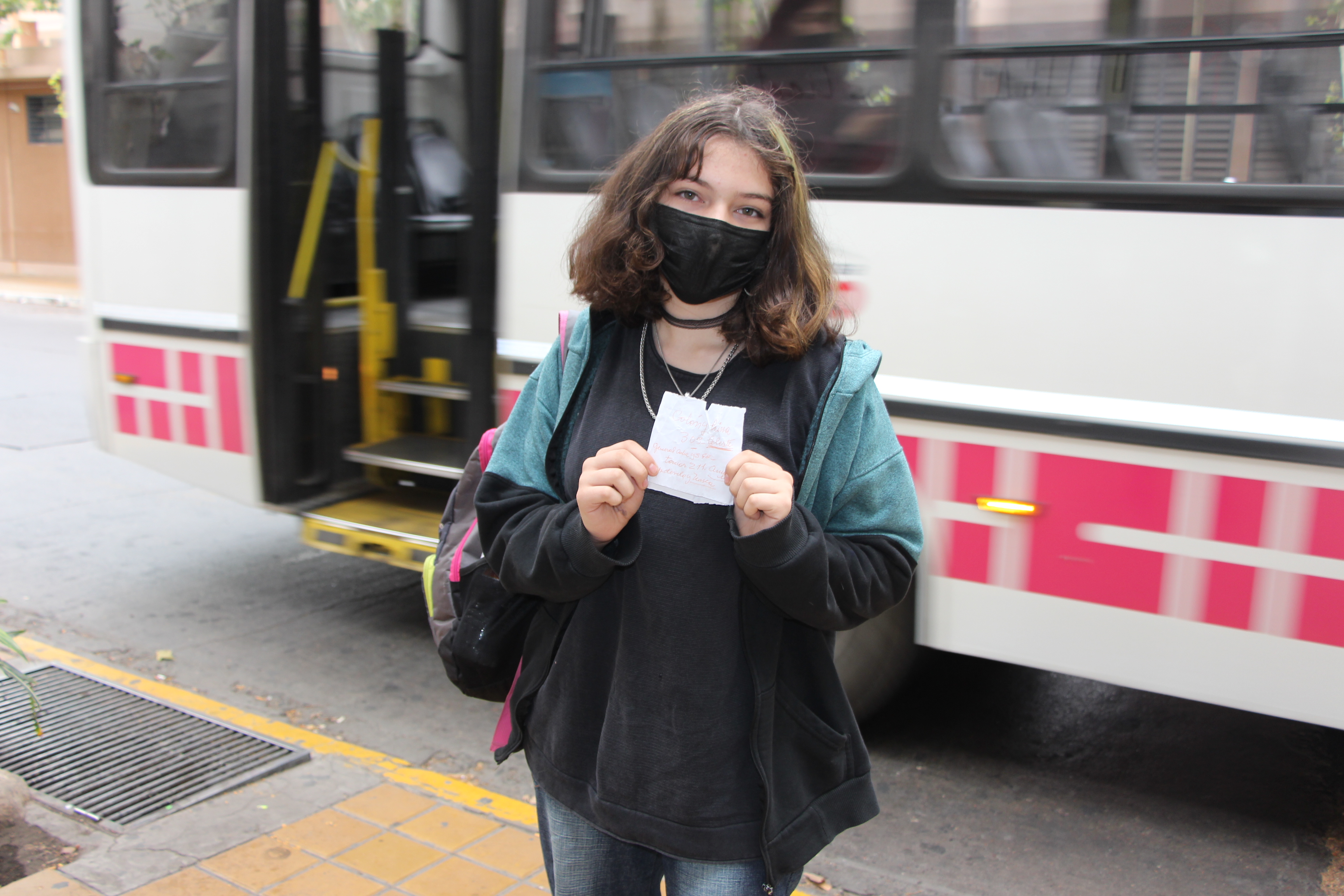 Julieta de 13 años bajó junto a su abuela de 70 de un colectivo que las trajo al centro desde Santa Lucía y buscaban otro para llegar a Rawson. La adolescente tenía en la mano un papel que su mamá le había escrito con las líneas que debían tomar, pero la parada correcta era un gran misterio. "Se que colectivo nos tenemos que tomar, pero no se dónde. Ya lo encontraremos", reconoció la chica.