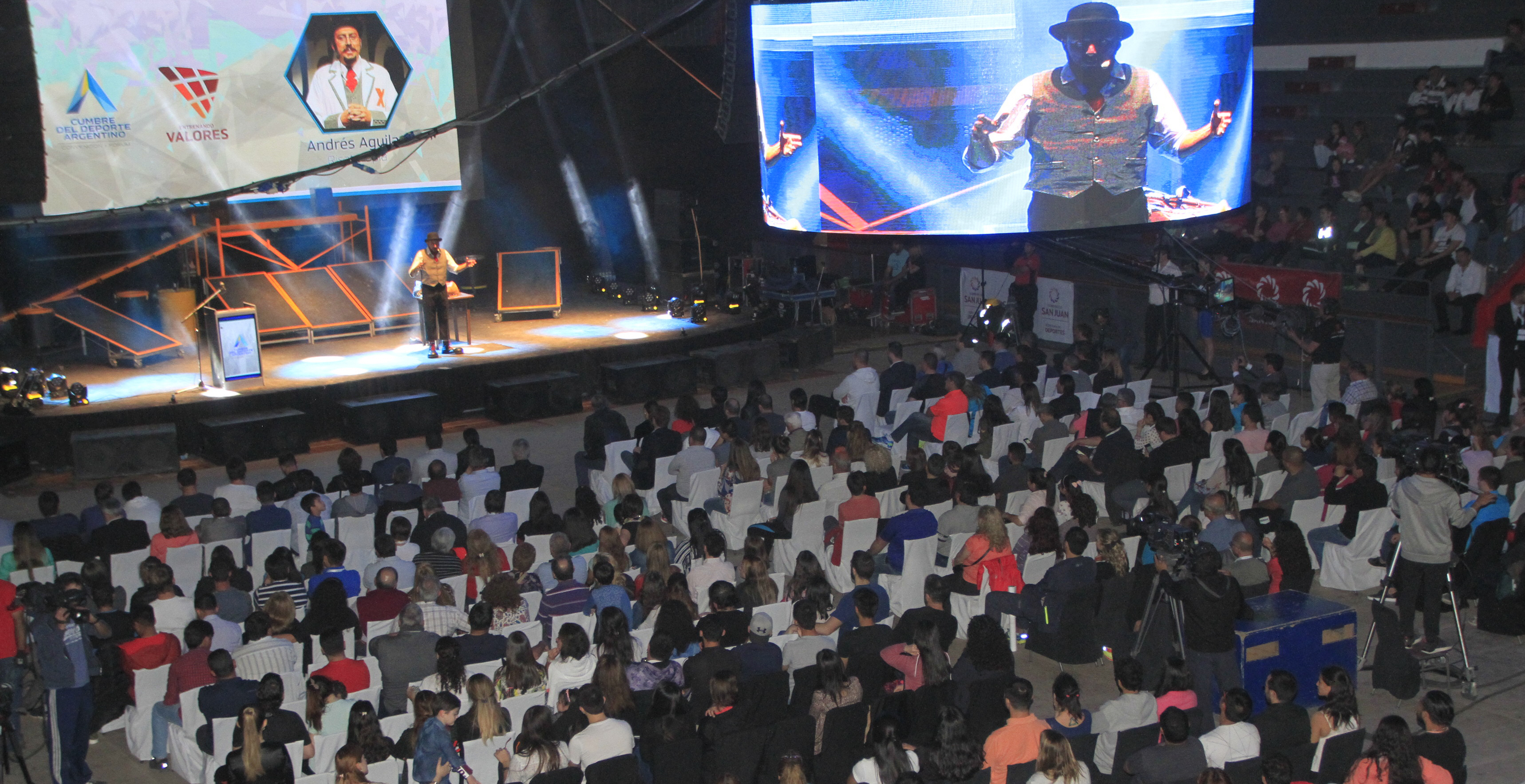 Anoche nadie quiso perderse la segunda jornada de la Cumbre y el escenario de "Entrenando Valores" en el Aldo Cantoni contó con un importante marco de público que colmó las gradas y las sillas ubicadas en el parquet para escuchar las charlas y el cierre de Malevo. Cabe destacar que el público puede ingresar retirando gratis su entrada previamente por las boleterías del estadio.