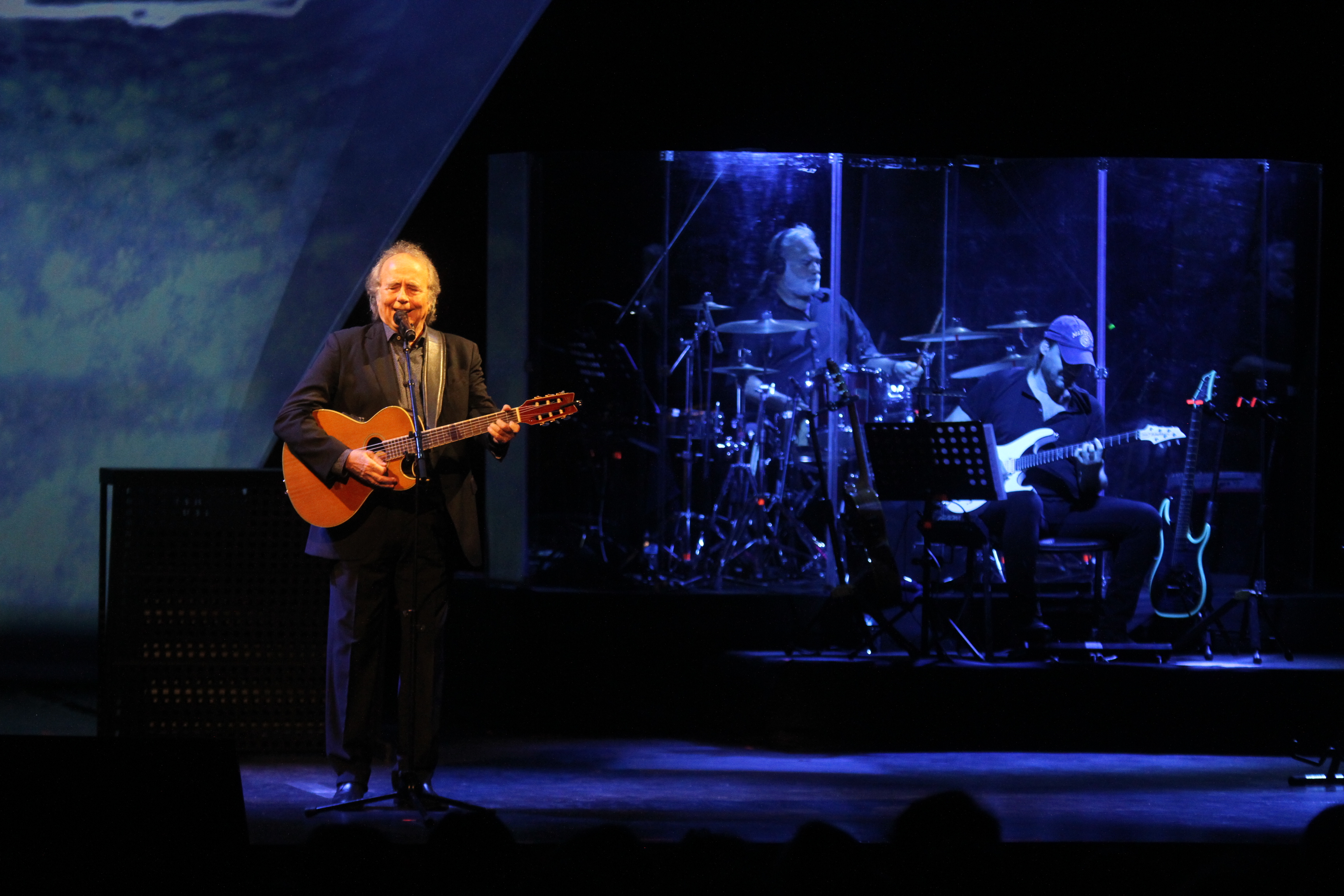 Así, con su voz intacta, el poeta arrancó con Mediterráneo y explicó por qué a la audiencia que lo aplaudió de pie desde que apareció en escena y se colgó la guitarra al hombro, seguido de sus músicos que se dejaron llevar por el capitán de la nave.
