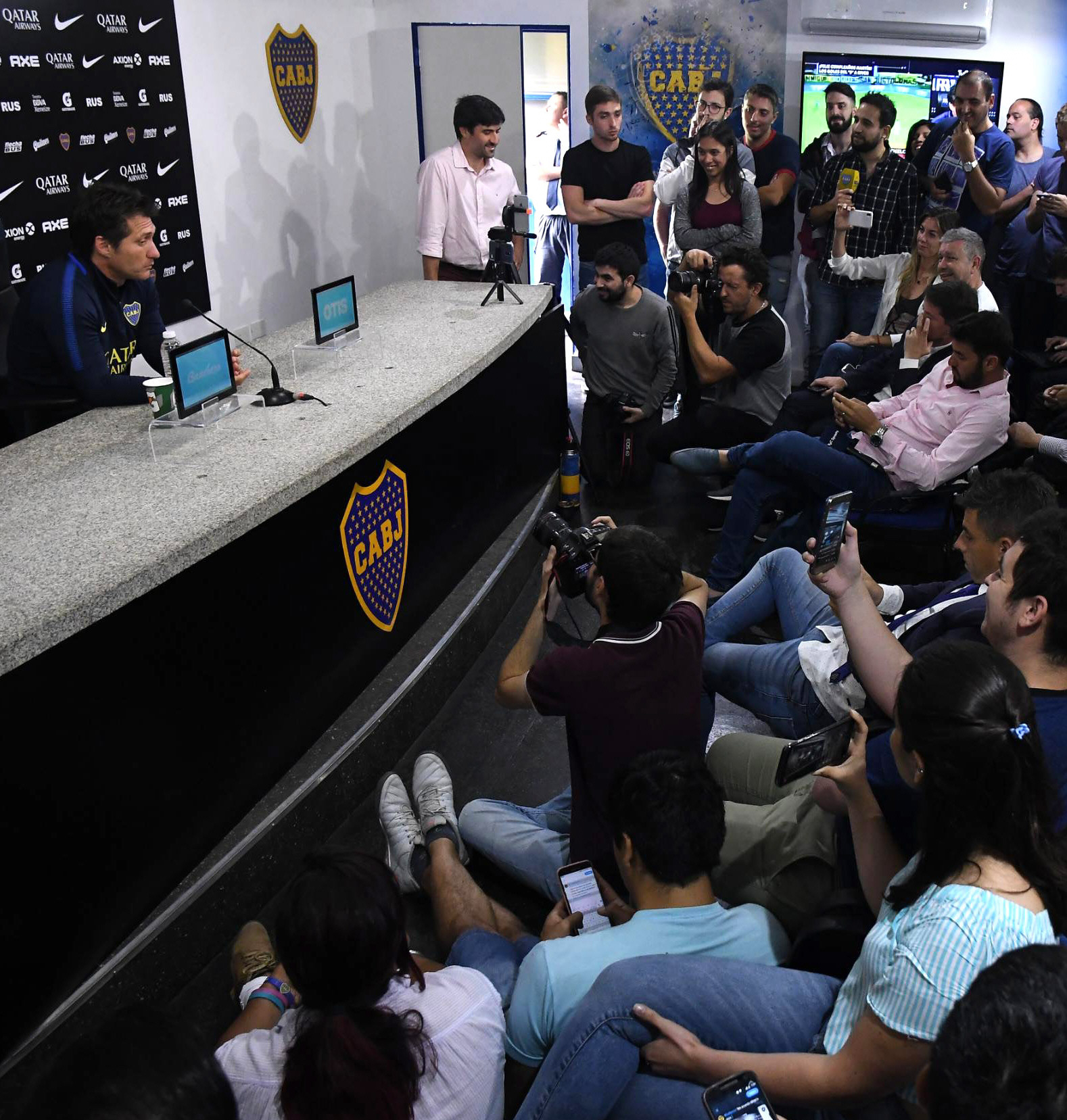 "Boca y River pusieron al fútbol argentino en un lugar al que no habían llegado nunca. En el último tiempo fue muy castigado y es importante destacar que, más allá de lo que pase, el mundo habla de esta final", remarcó el "Mellizo" en la sala Antonio Carrizo, inaugurada hace un año y medio, que estuvo colmada como nunca de periodistas locales y extranjeros, y por todos los medios que no suelen cubrir eventos deportivos.