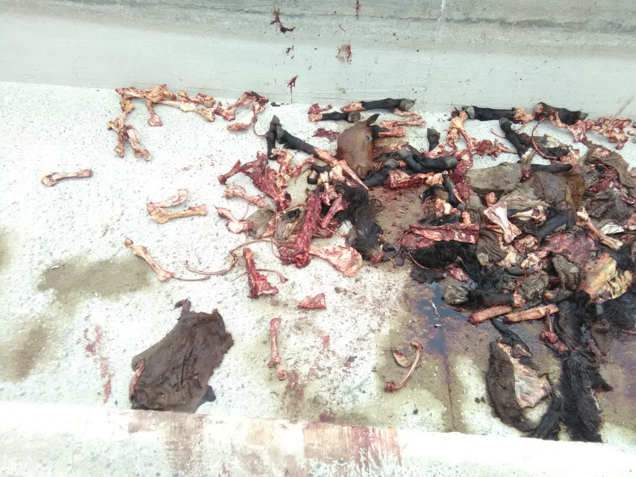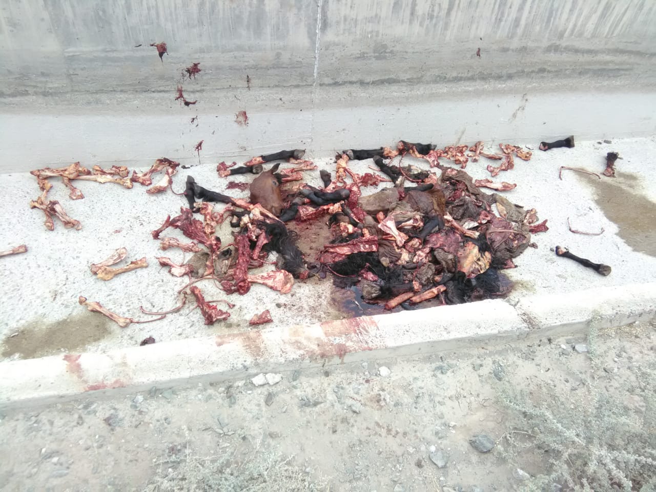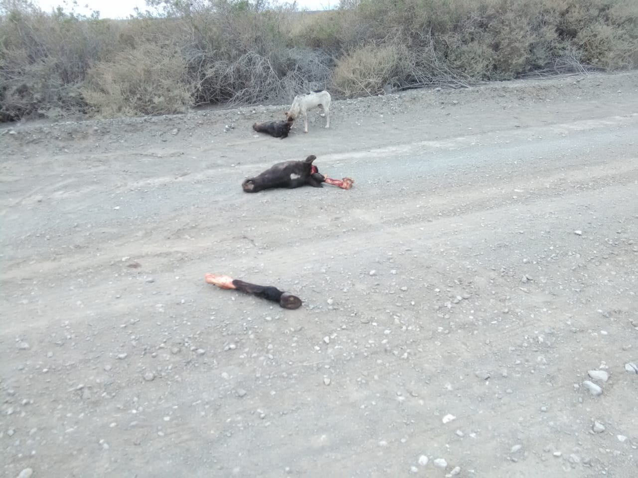 Los equinos, depostados totalmente, quedaron desparramados por el lugar y algunas de sus partes fueron comidas por los perros de la zona.